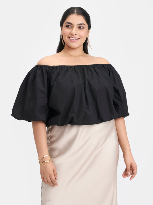 100% Cotton Black Boxy Shirt With Scallop Hem