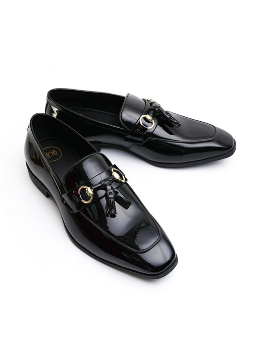 Monkstory Horsebit Tasseled Patent Slip-Ons - Black