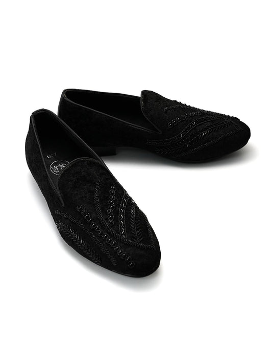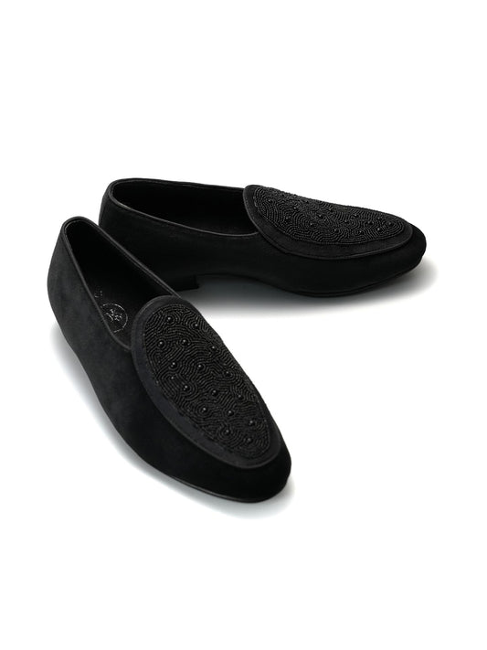 Monkstory Hand-Embroidered Embellished Slip-Ons - Black