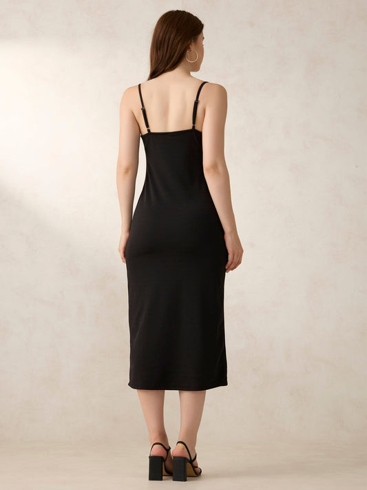 Black Strappy Square Neck Bodycon Dress