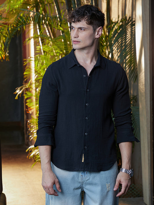 Sold outMen's Onyx Black Chain-Creased Shirt