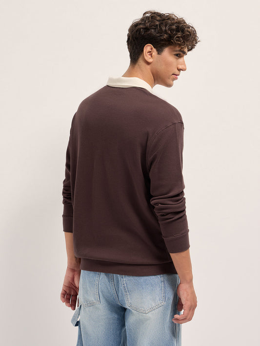Black Chenille Patch Design Relax Fit Crew Neck Sweatshirt