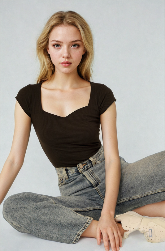 MWB Ribbed Square Neck Detail Top