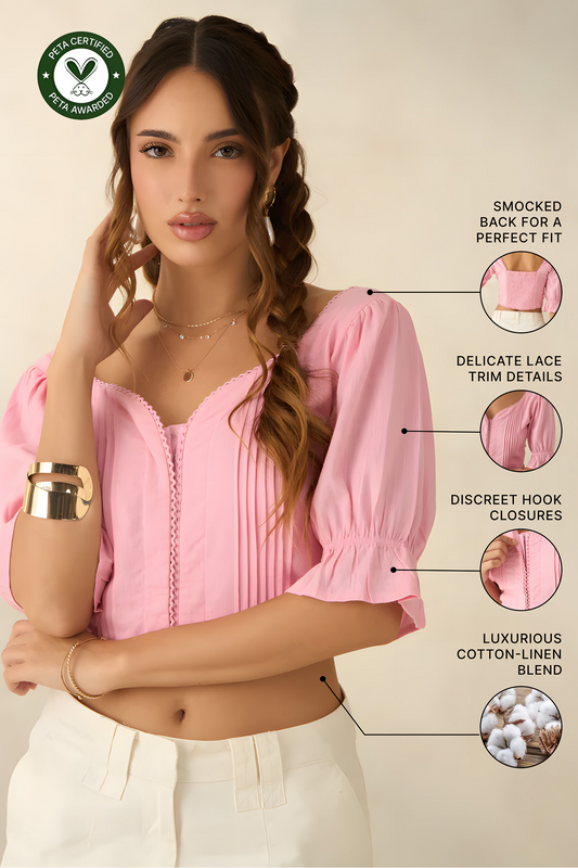 Women Karara Top, Puff Sleeve, Polyester, Pink