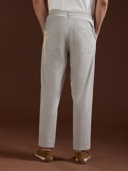 Grey Solid Cropped Carrot Fit Casual Chino Trouser