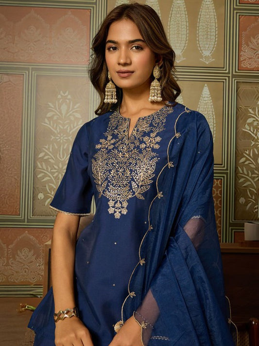 Dark Blue Embroidered Sharara Style Salwar Set