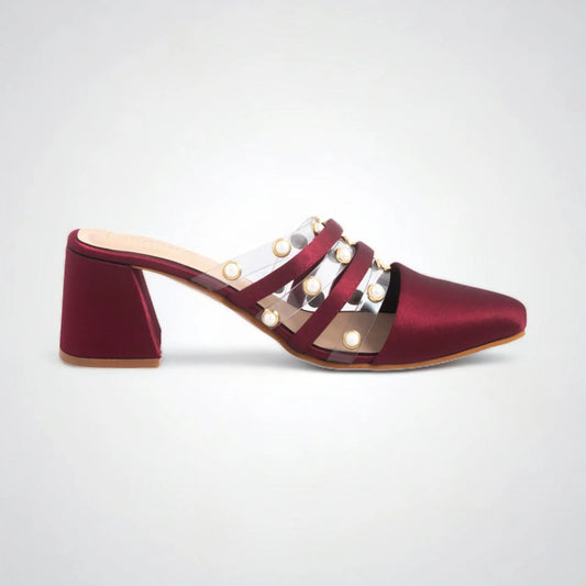 Theater Women Maroon Twiggy Piggies Mary Jane Block Heels