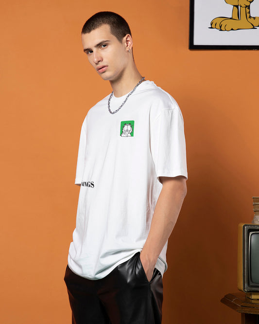 Men's White Garfield Hates Mornings Graphic Printed Oversized T-shirt