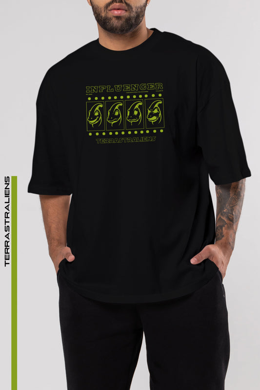 Men's Black Crest Mark Graphic Printed Oversized Acid Wash T-shirt