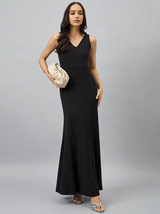 Sold outSolid Sleeveless V Neck Maxi Gown