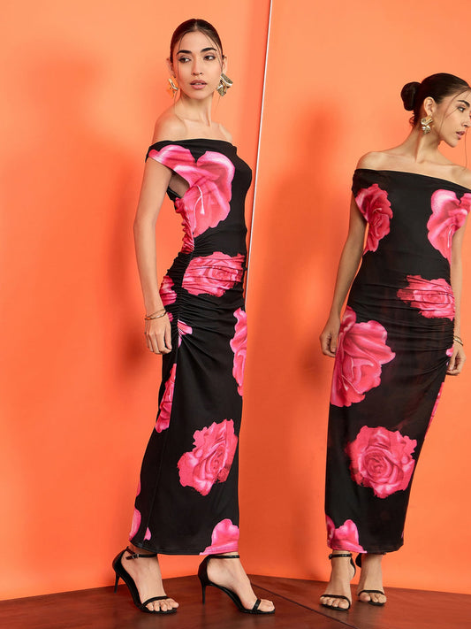 Asymmetric One-Shoulder Crepe Dress (without belt)