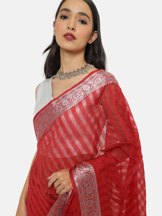 60% offVaruna Red Striped Saree