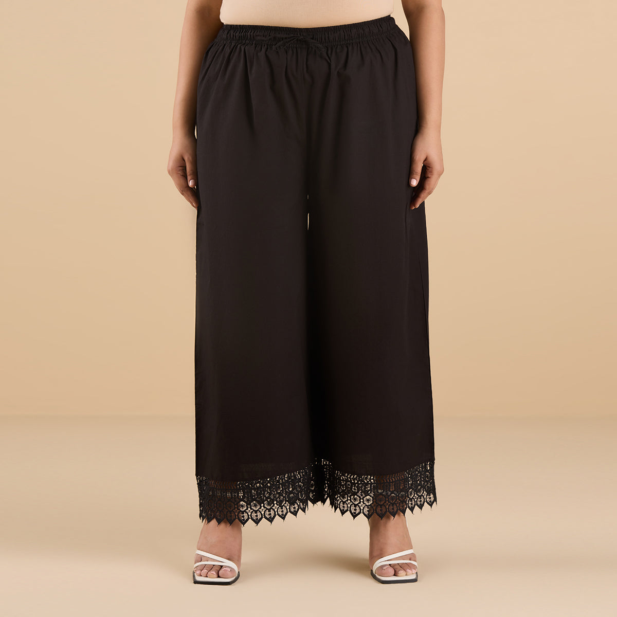 PLUS SIZE SOLID PALAZZO WITH LACE | XL - 6XL