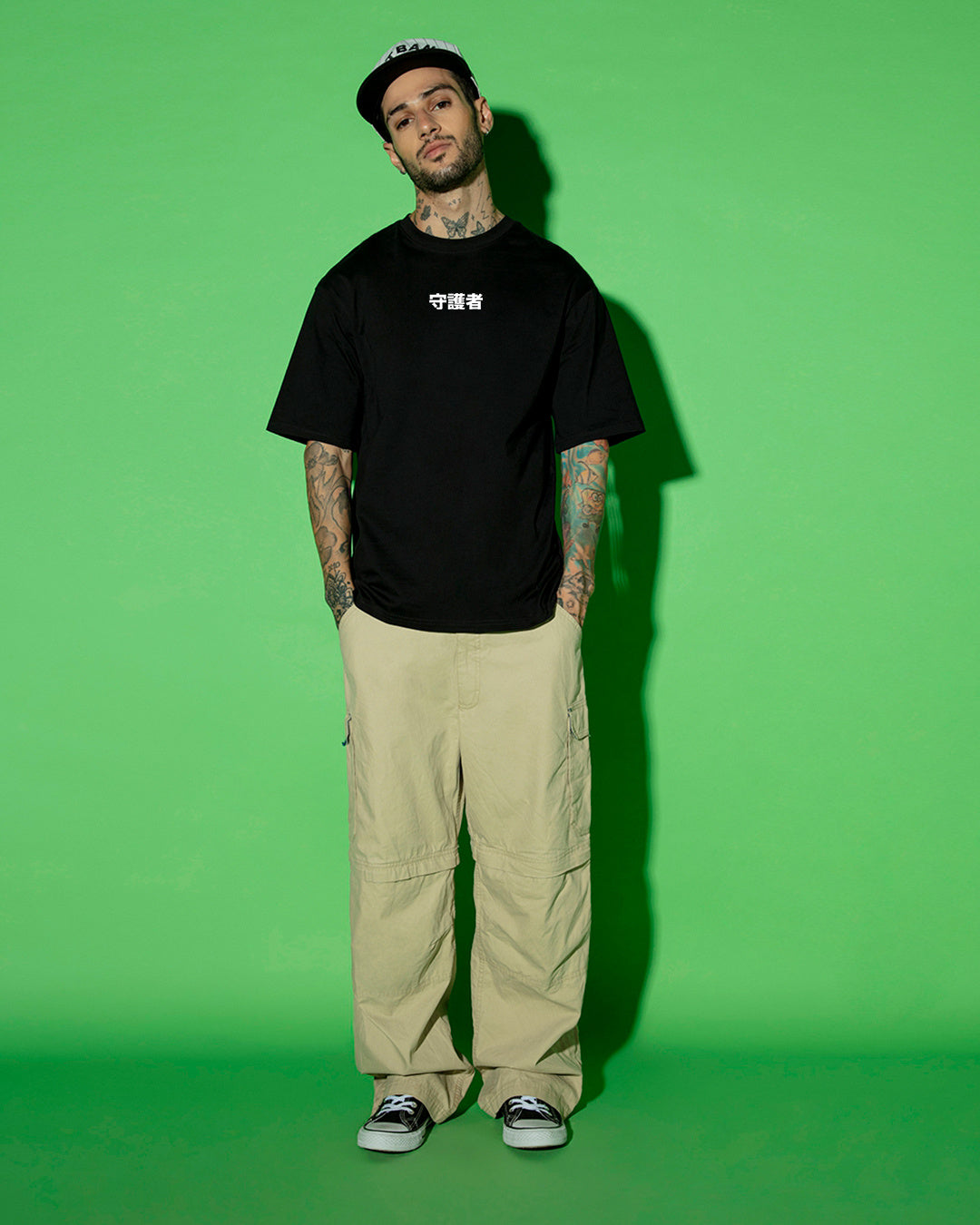 Men's Black Guardian Wings Graphic Printed Oversized T-shirt