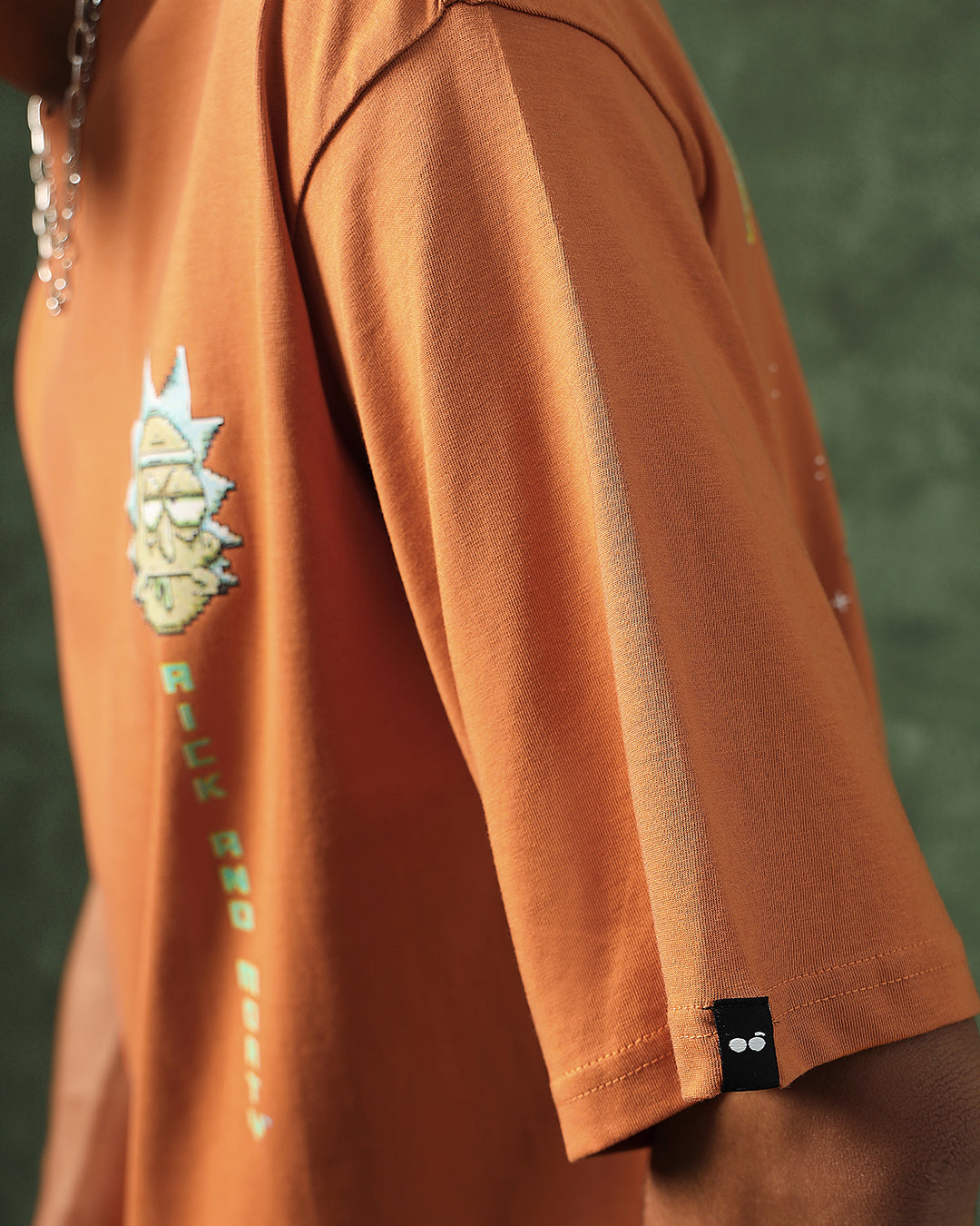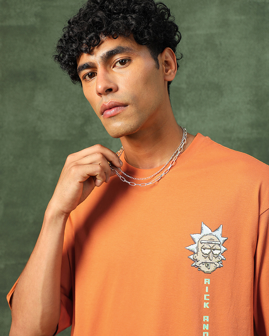 Men's Orange Bit Rick & Morty Graphic Printed Oversized T-shirt