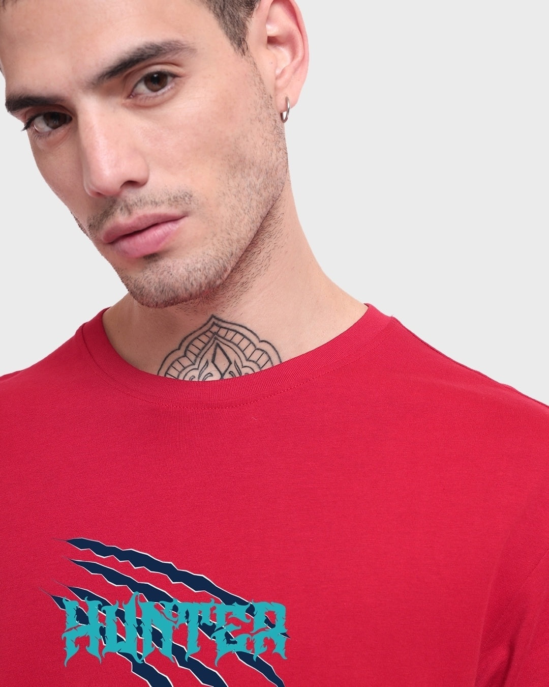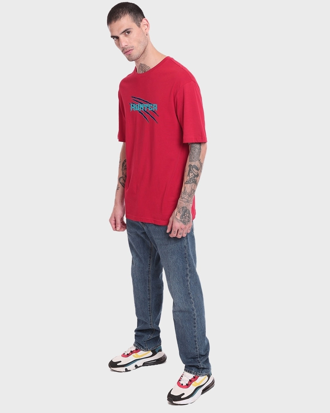 Men's Red Hunter Graphic Printed Oversized T-shirt
