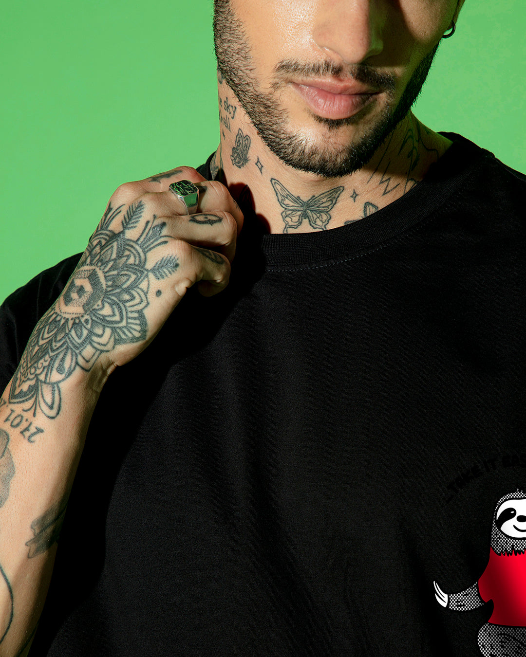 Men's Black Gimme a Break Graphic Printed Oversized T-shirt