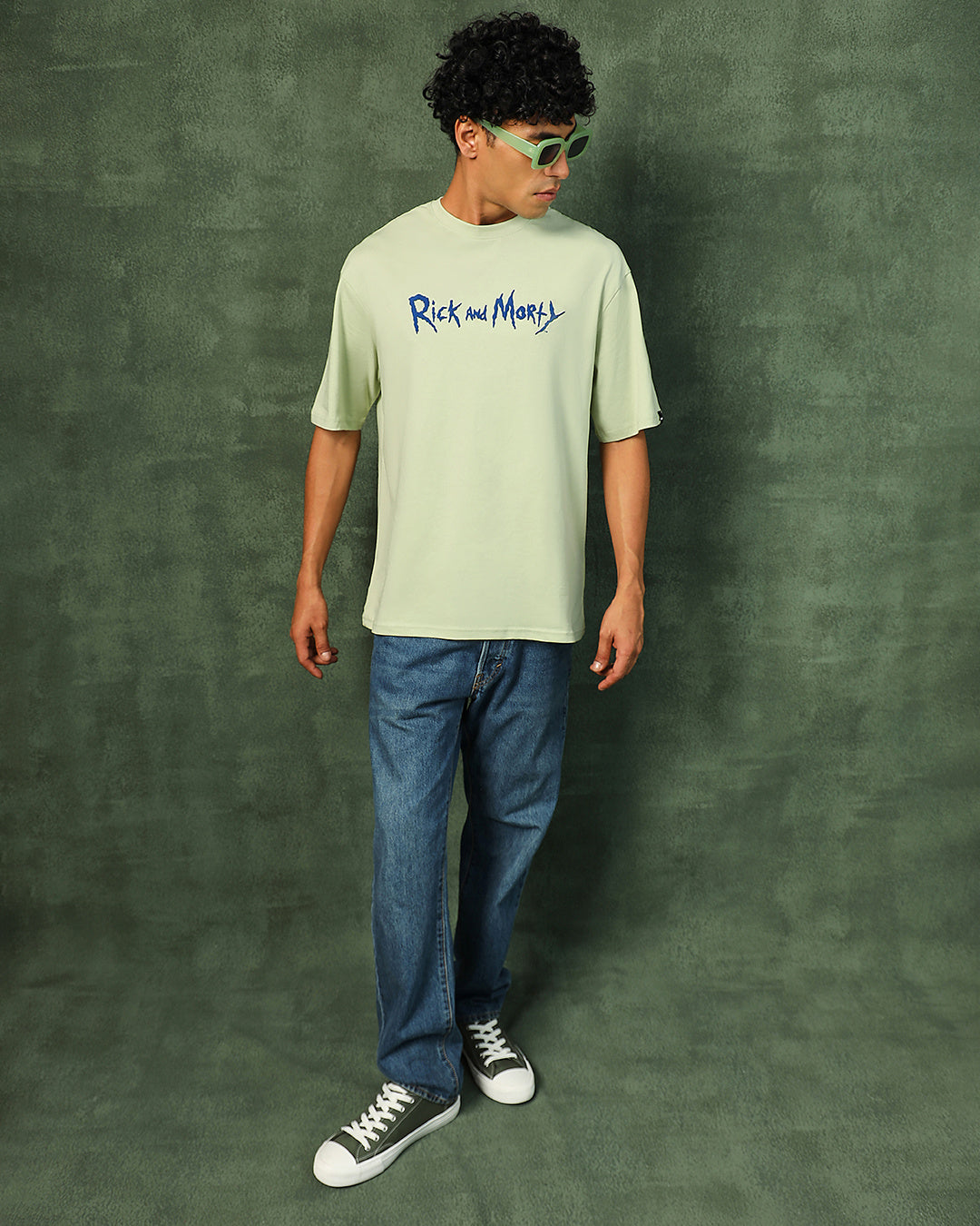 Men's Green Stoned Rick & Morty Graphic Printed Oversized T-shirt
