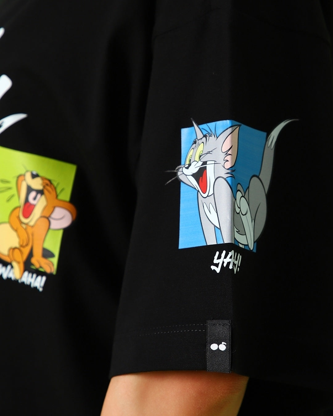 Women's Black Friends & Feelings T&J Graphic Printed Oversized T-shirt