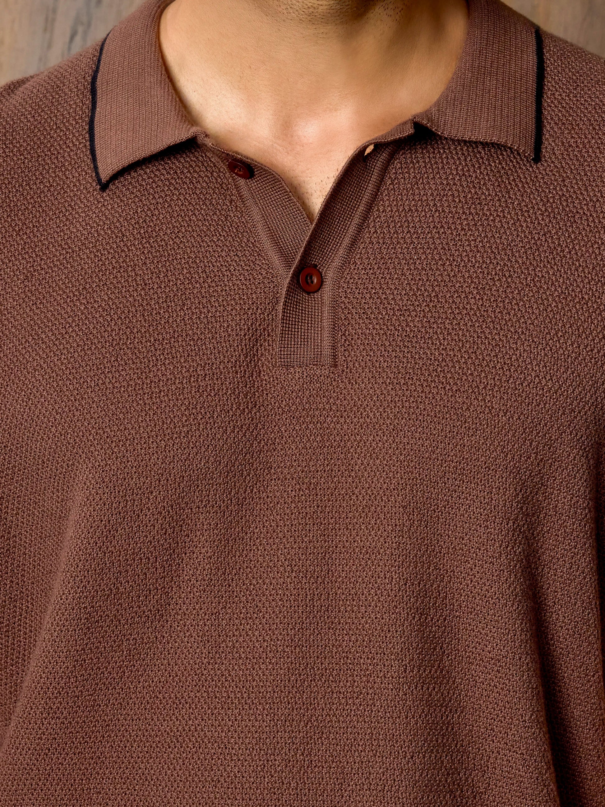3D Knit Cotton Polo Regular Fit - Deep Mocha