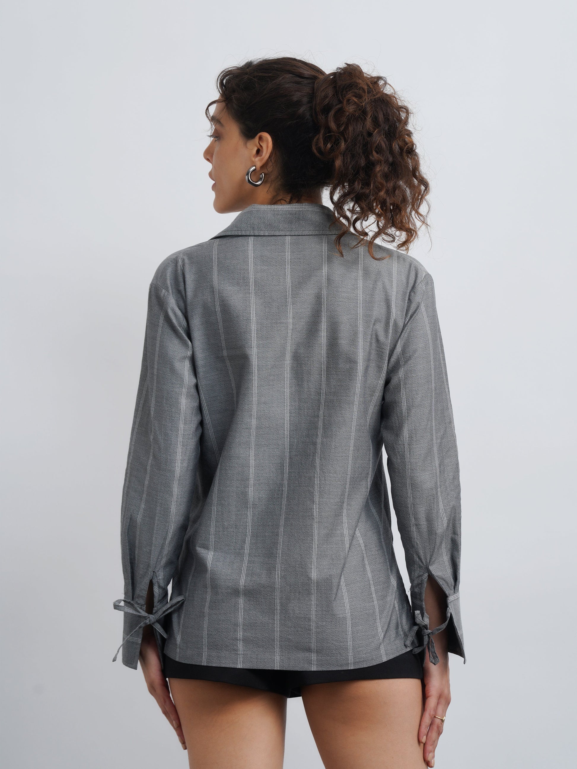 Grey Cotton Drawstring Shirt