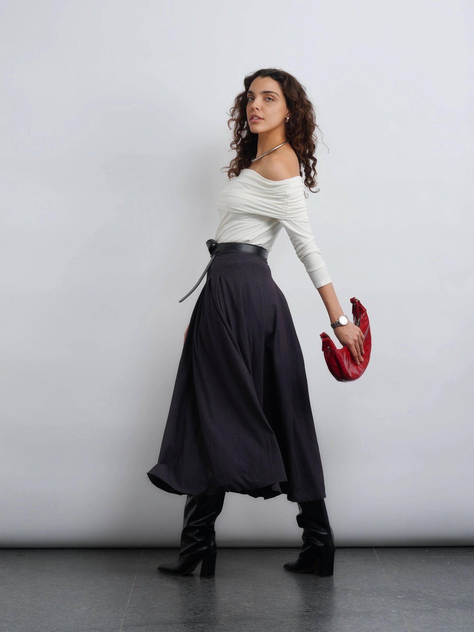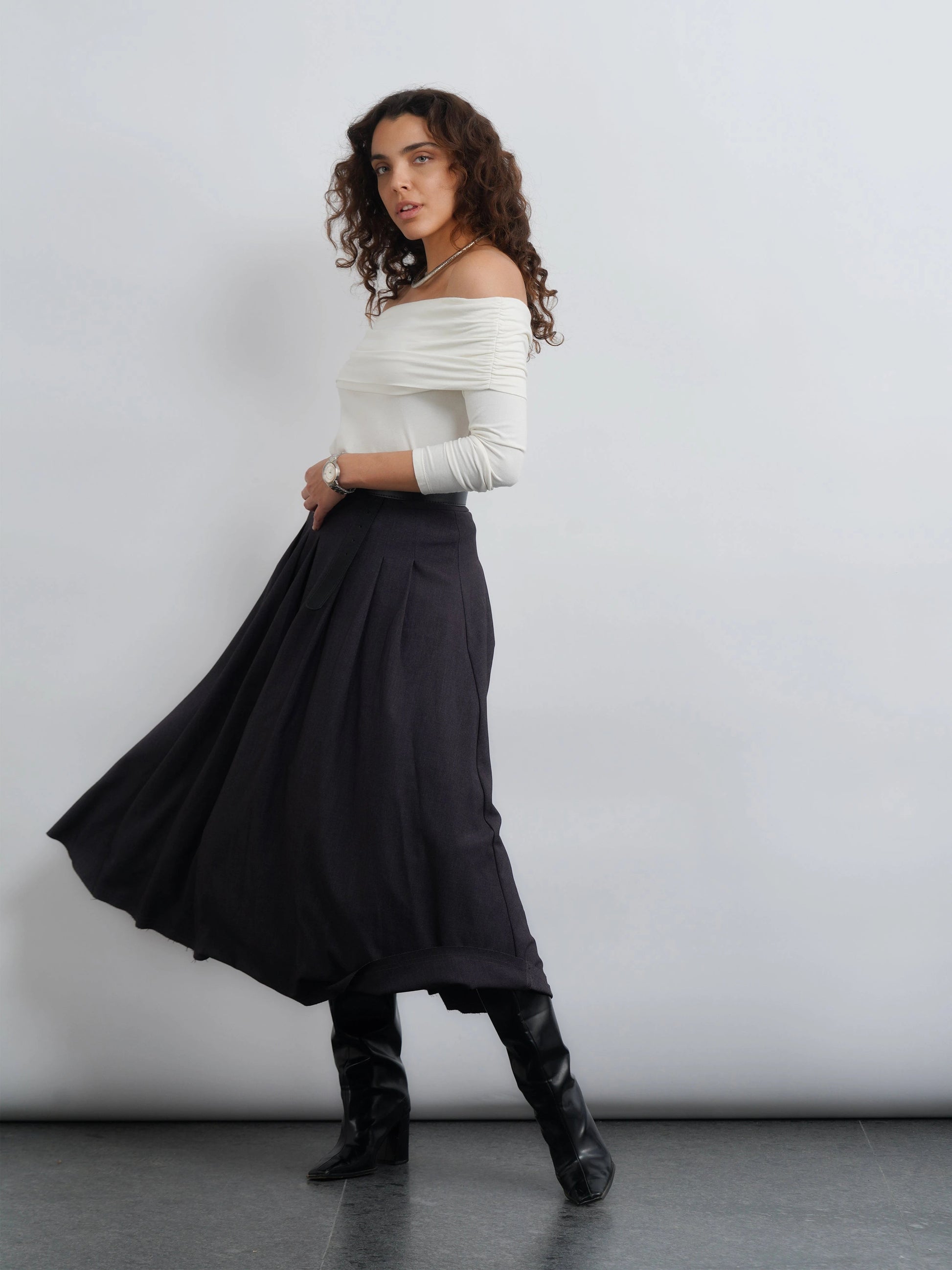 Off-Shoulder Knit Top - White