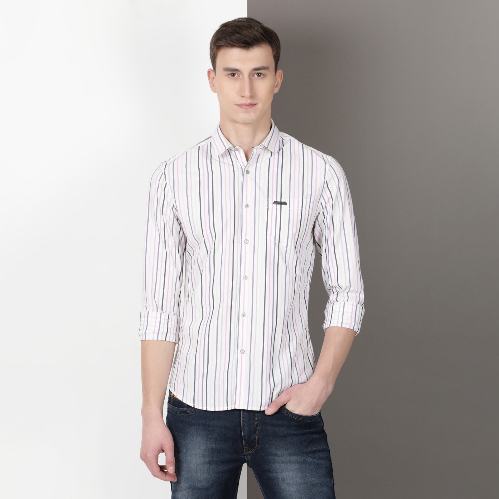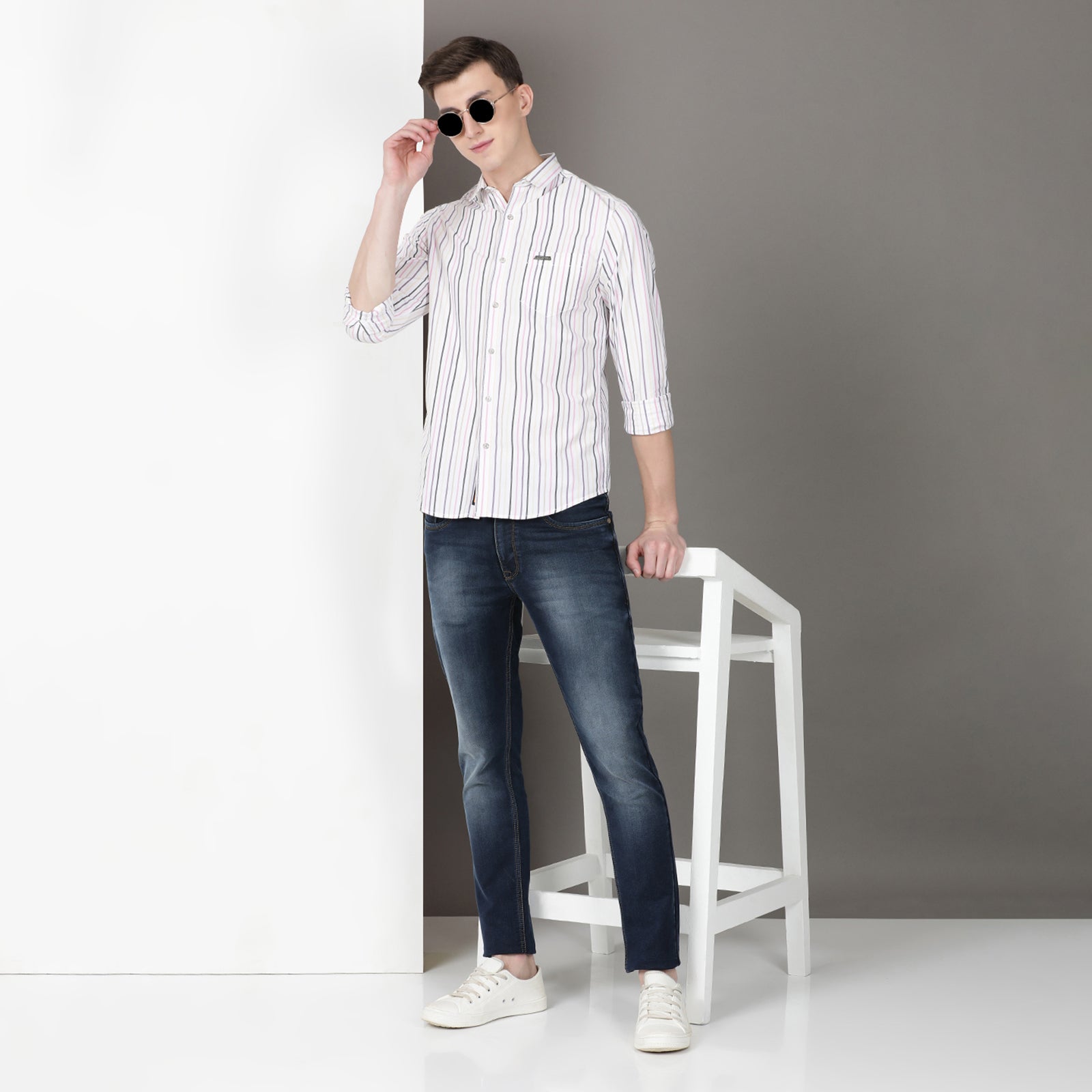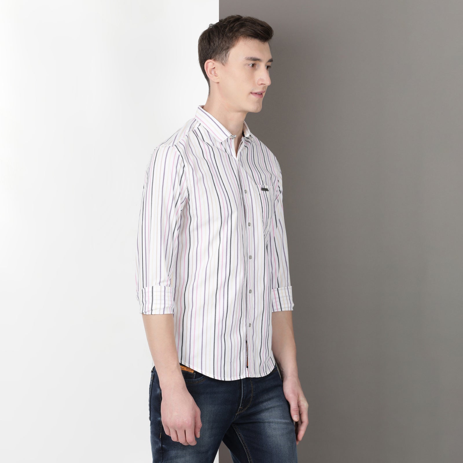 White Full Sleeve Striped Shirt