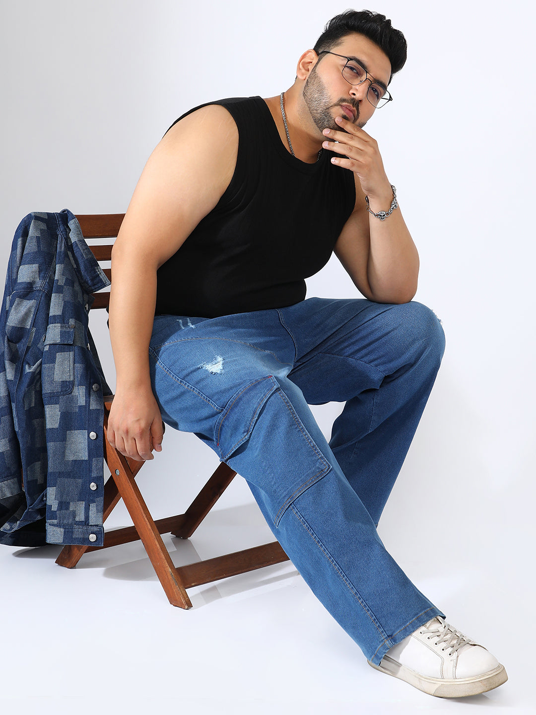 Asymmetrical Stitch Denim Jeans