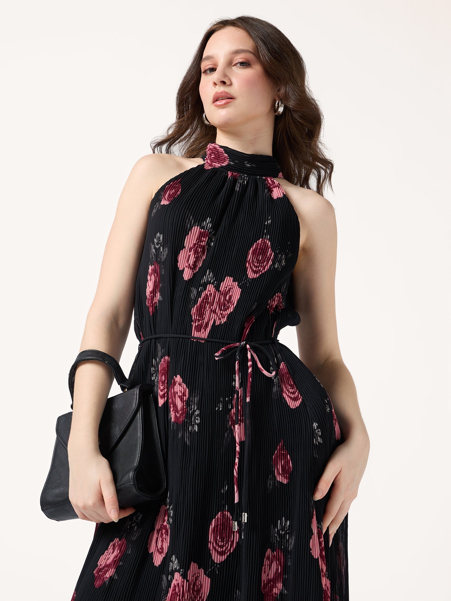 Black Halter Neck Floral Printed Dress