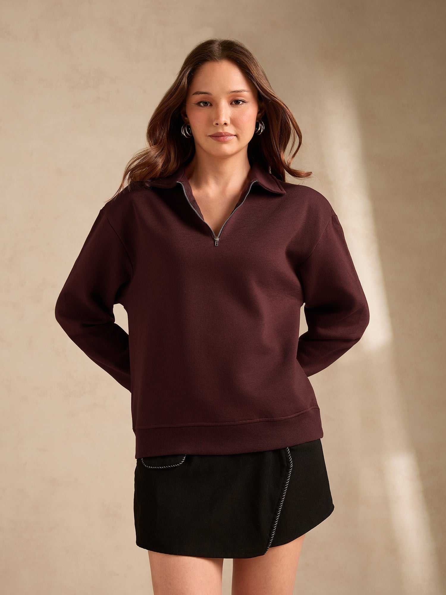 Brown Plush Russian Fleece Zip-Up Sweatshirt