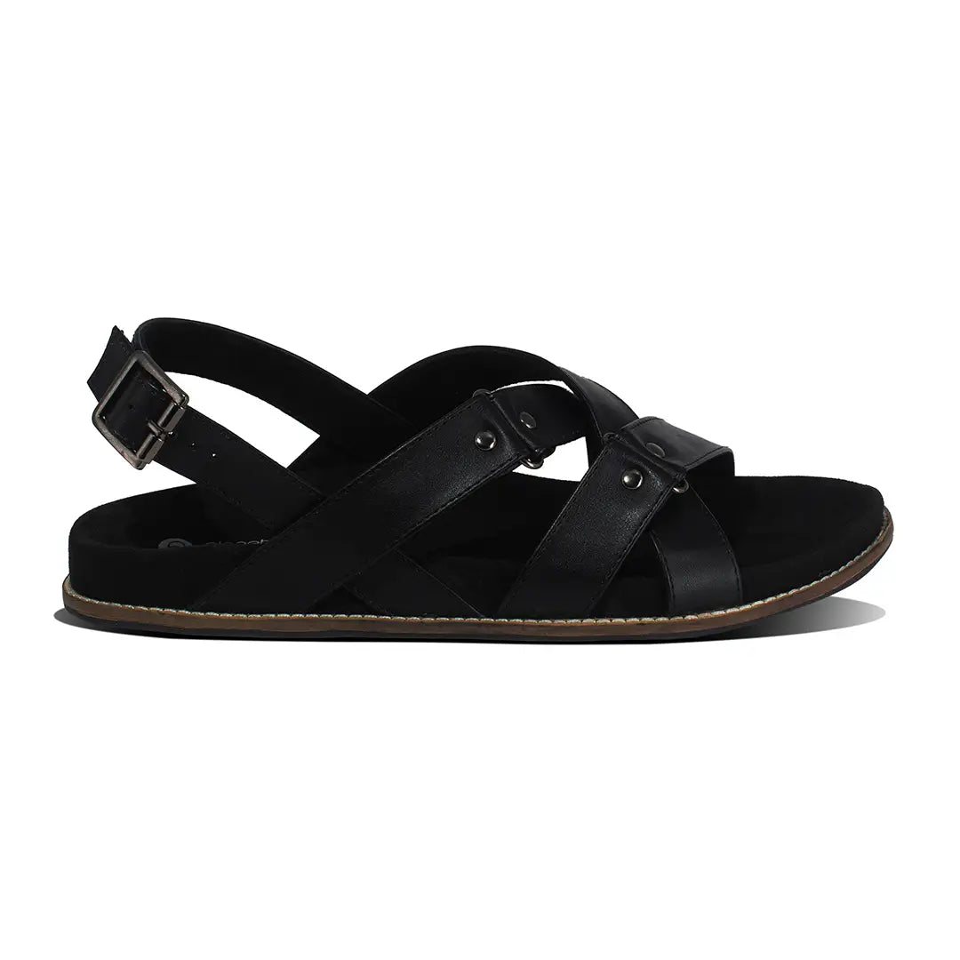 Paaduks Fox Crossover Vegan Leather Black Men Sandals