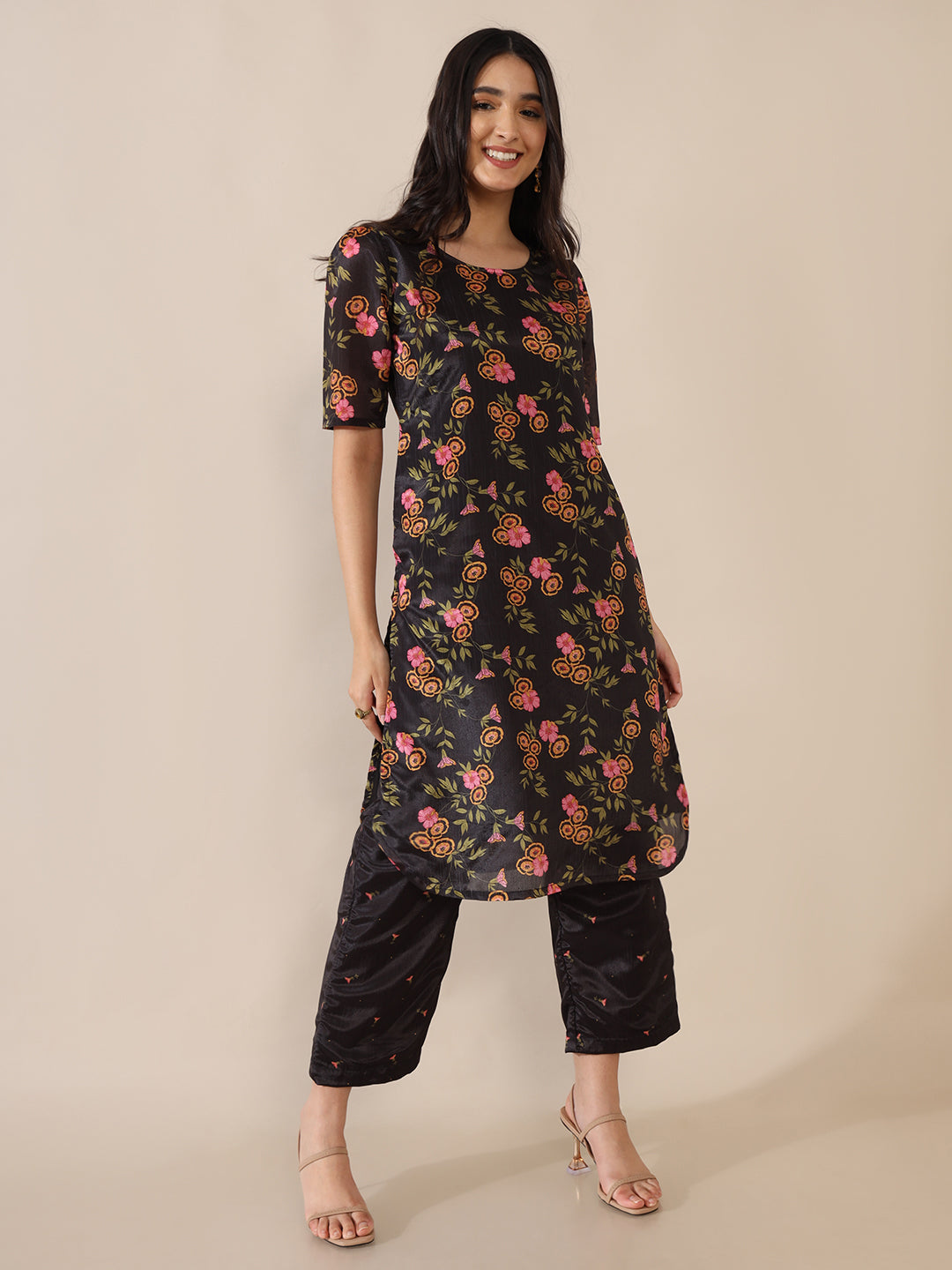Sareen Floral Printed Black Kurta Set