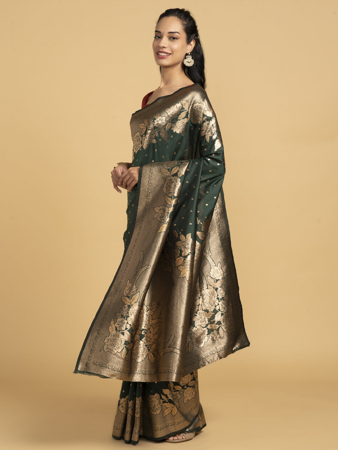 Divine Drapes Green Motif Saree