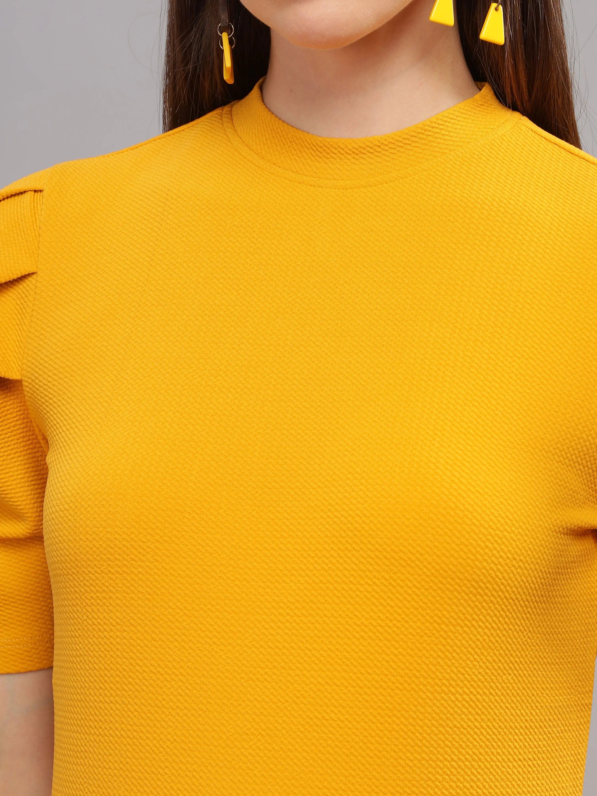 Women Karara Top, Short Sleeve, Polyester, Mustard