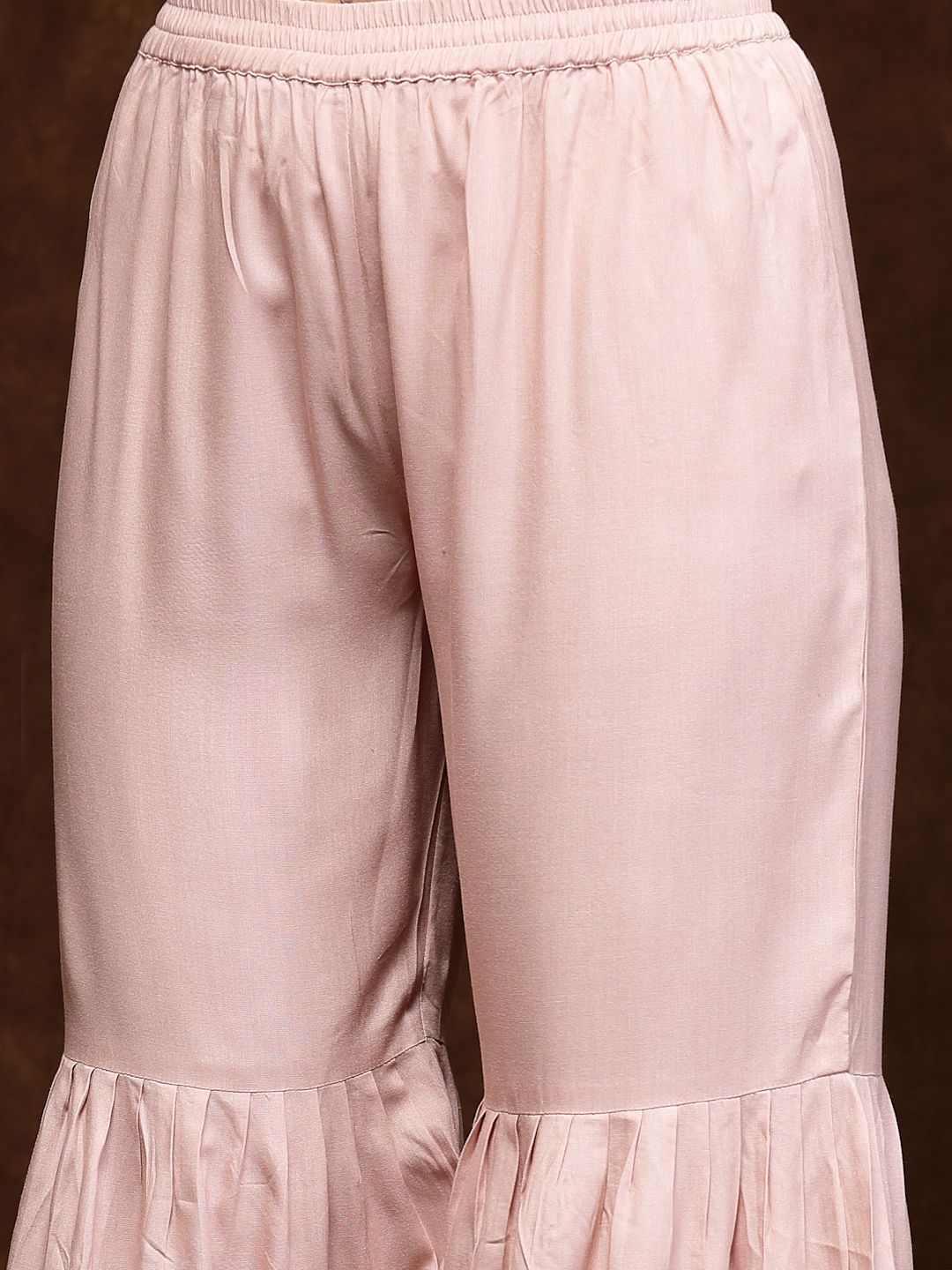 Rose Gold & Purple Ethnic Motifs Embroidered Anarkali Kurta & Sharara With Dupatta