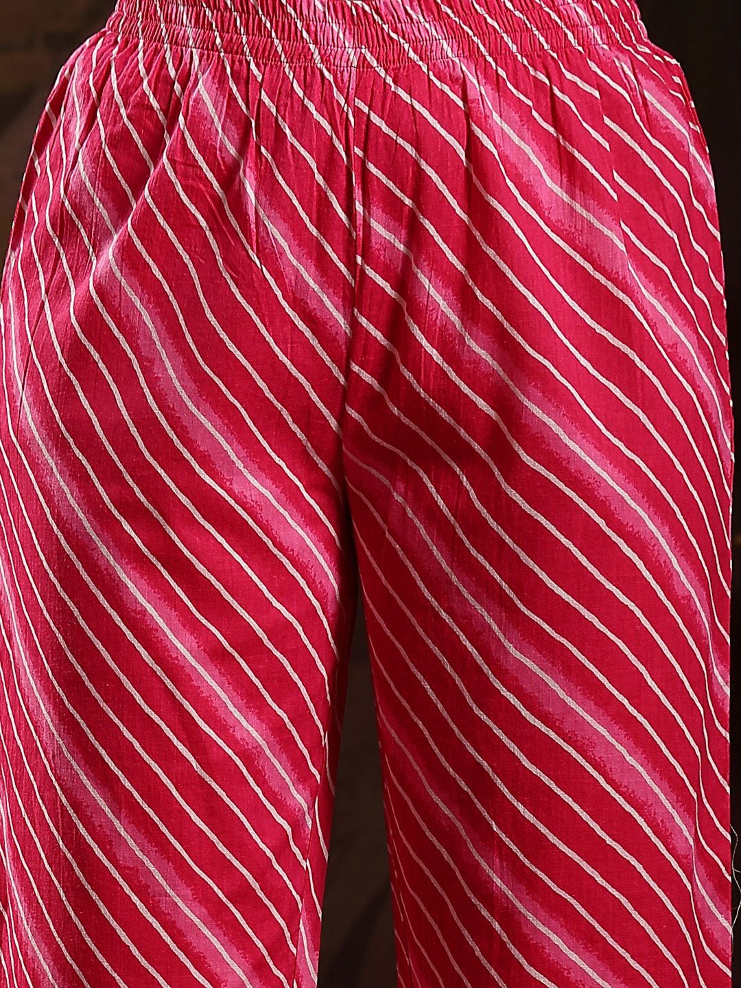Leheriya Printed Empire Sequinned Pure Cotton Anarkali Kurta With Trouser & Dupatta