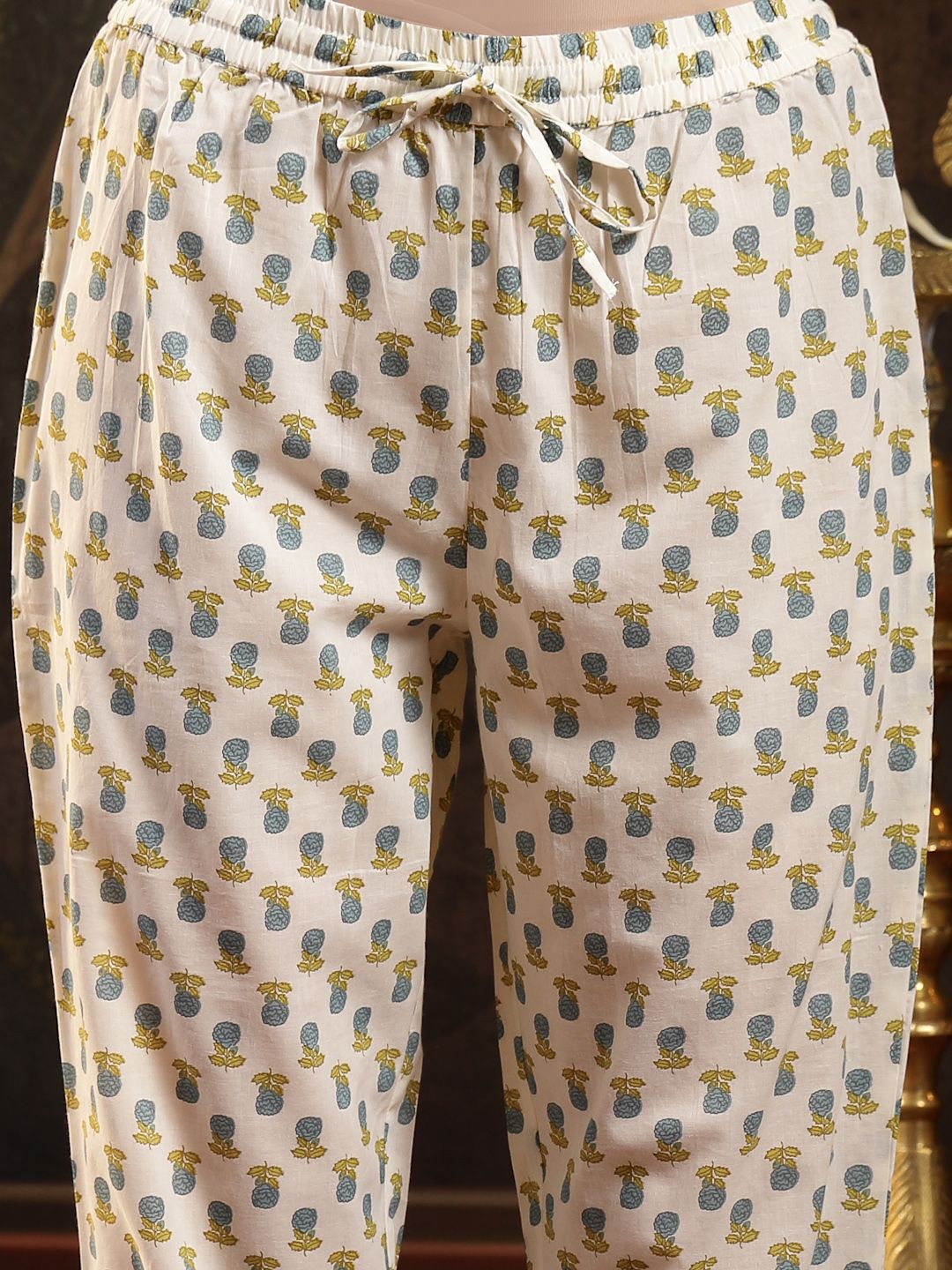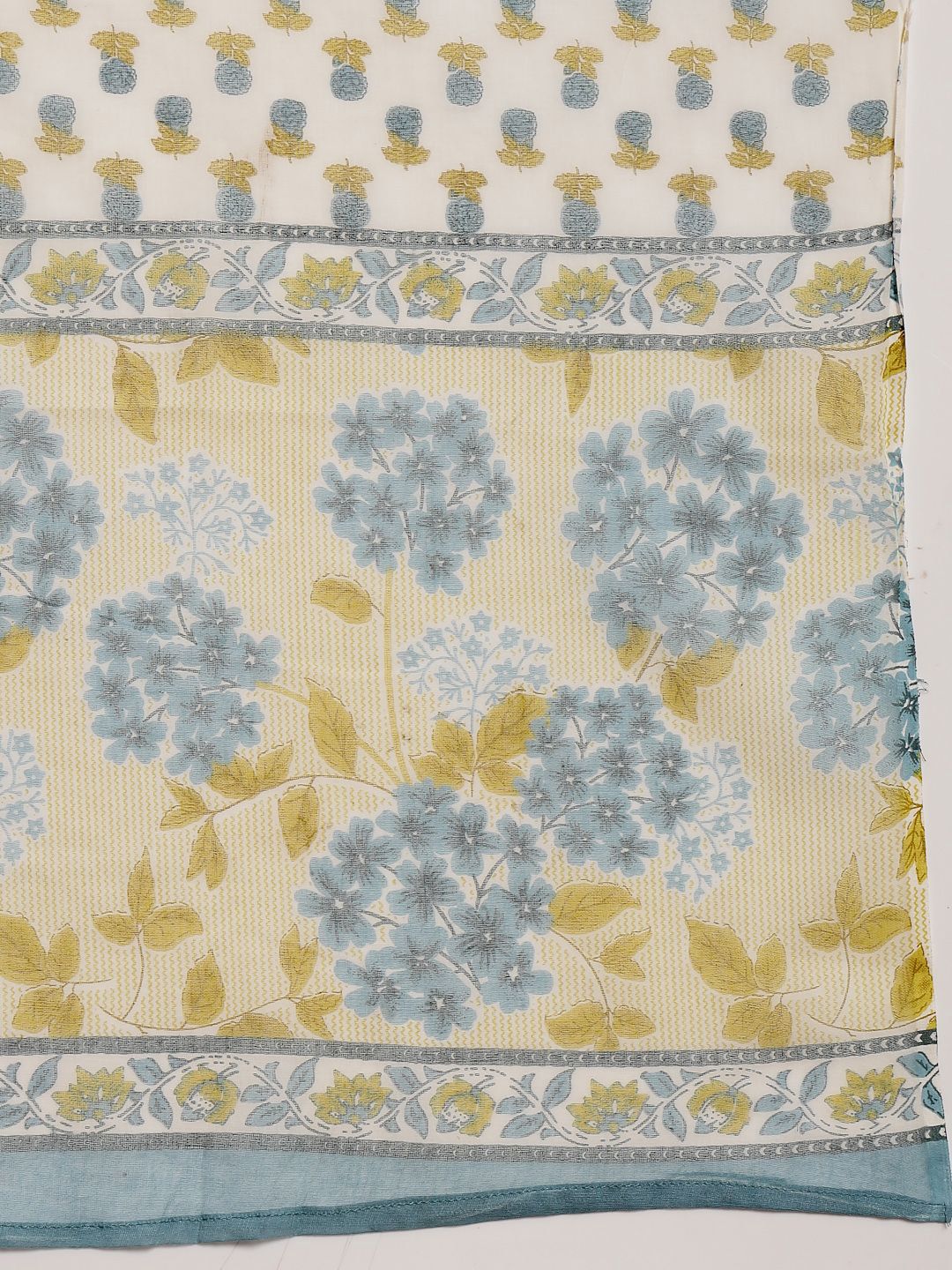 Floral Printed V-Neck Sequinned Pure Cotton Kurta With Trousers & Dupatta