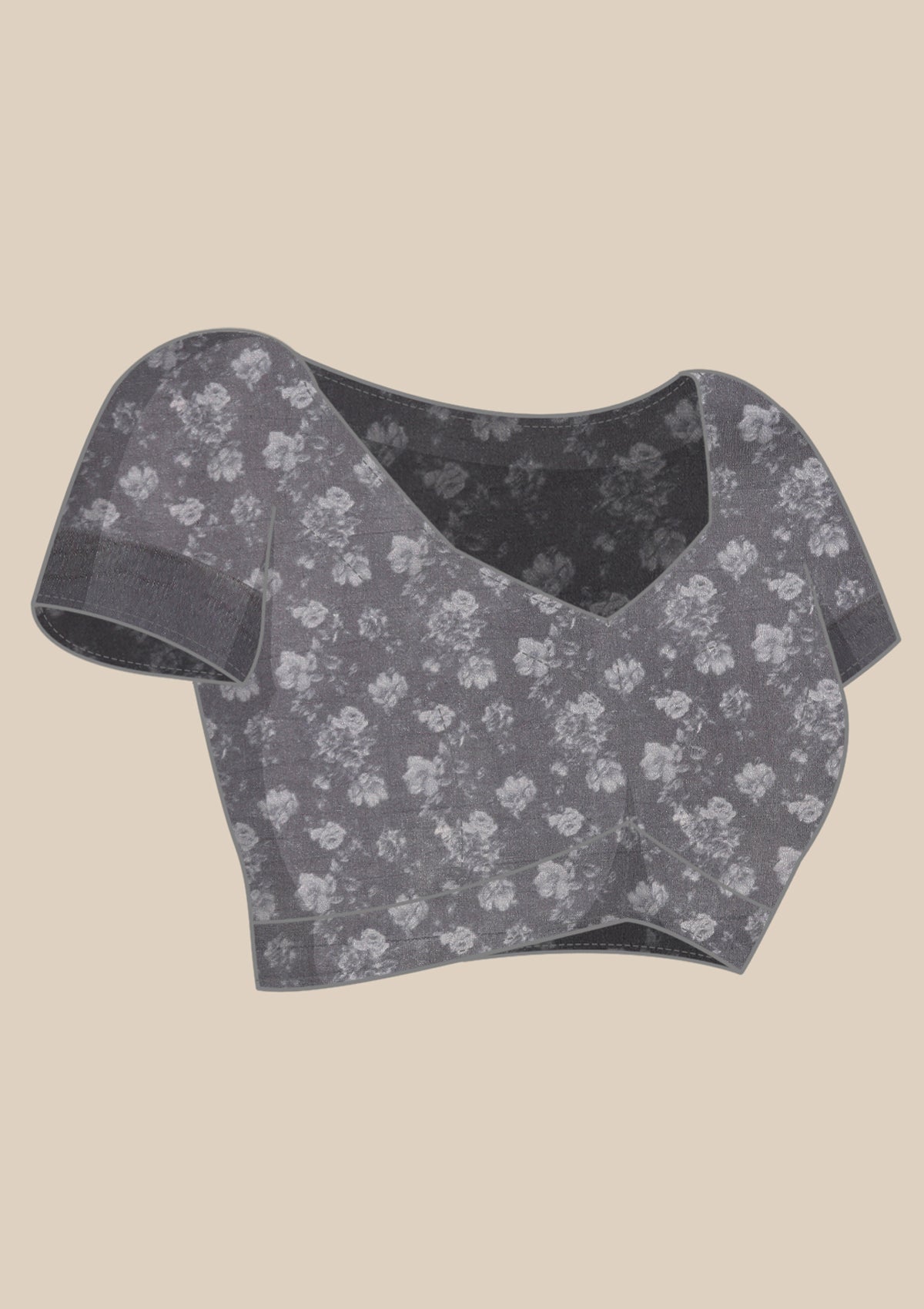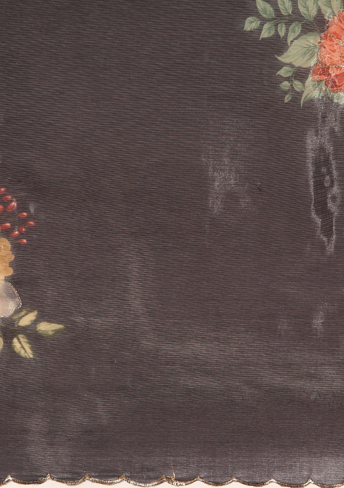 Metallic Charcoal Printed And EmbroideRed Organza Saree