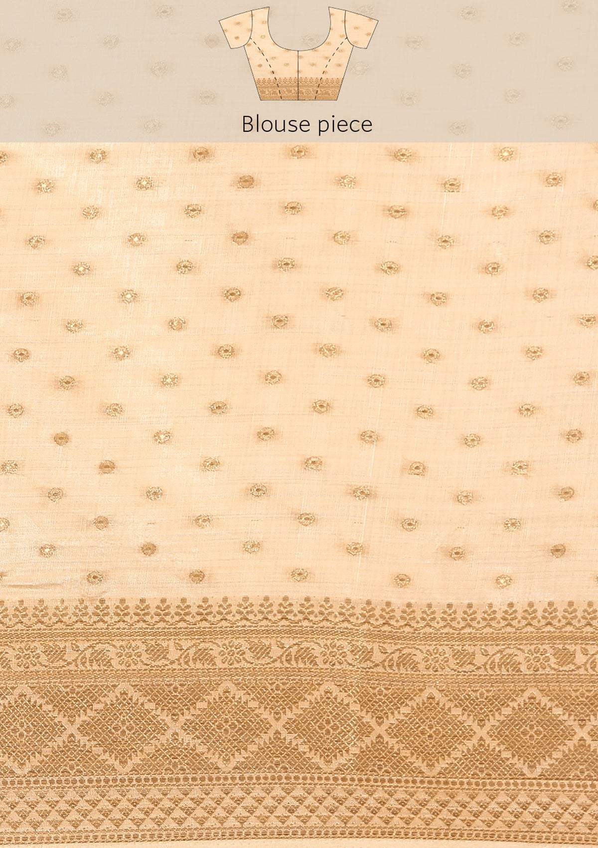 Cream Traditional Zari Butta Woven Tussar Saree