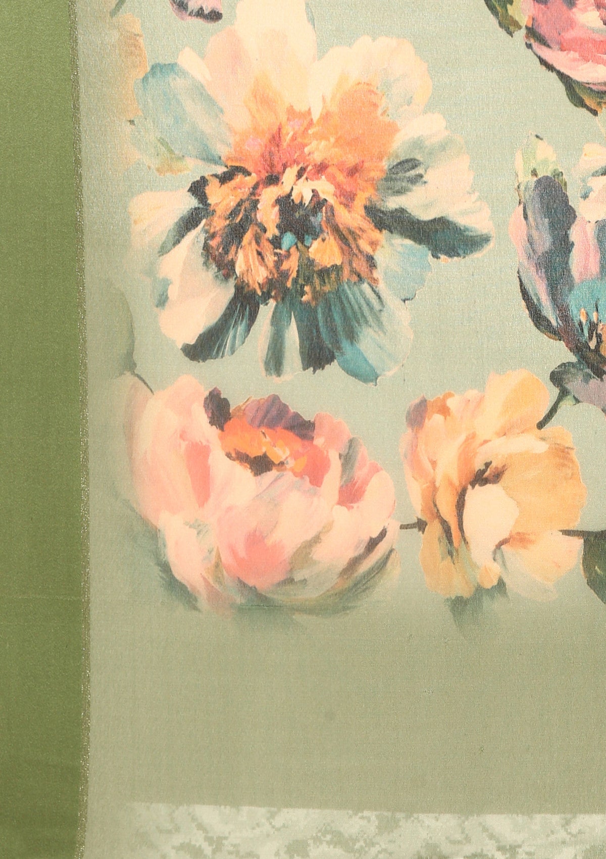 Dusty Green Floral Printed Georgette Saree