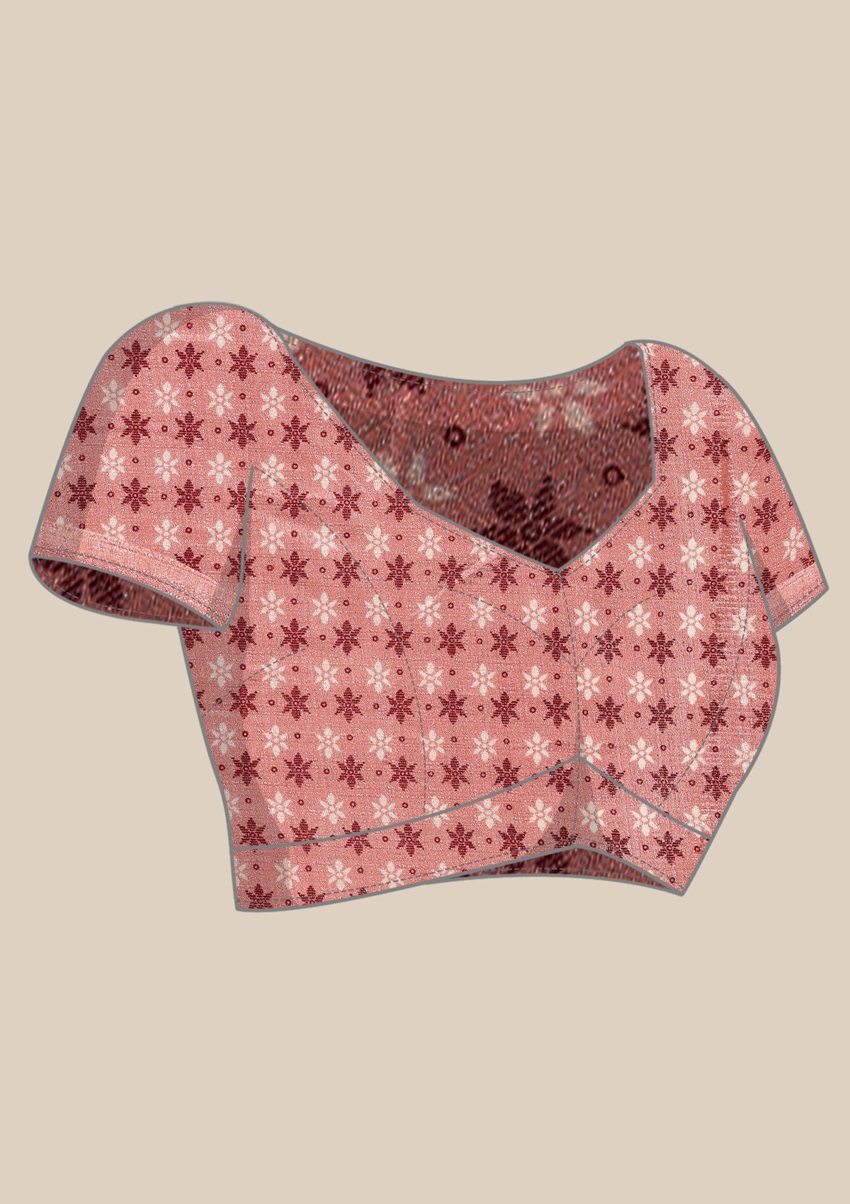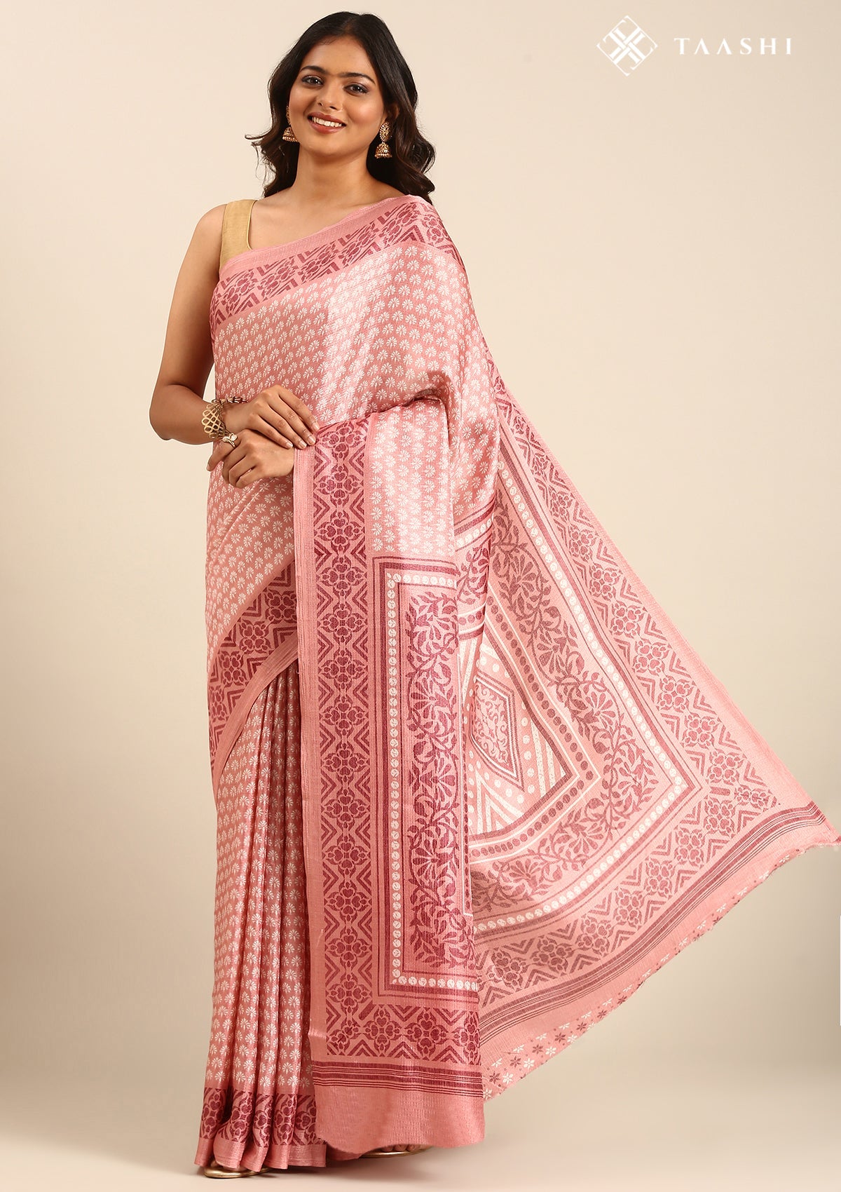 Dusty Pink Butti Printed Art Tussar Matka Silk Saree