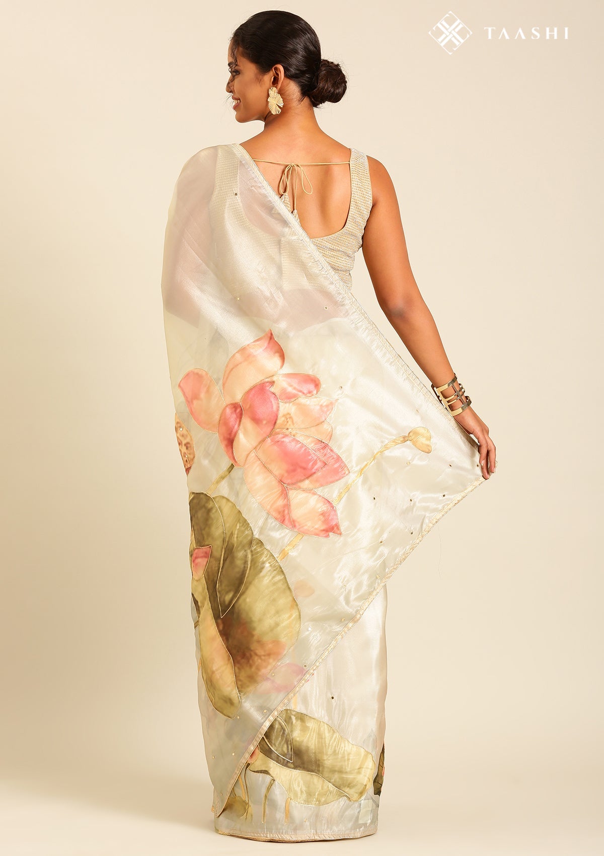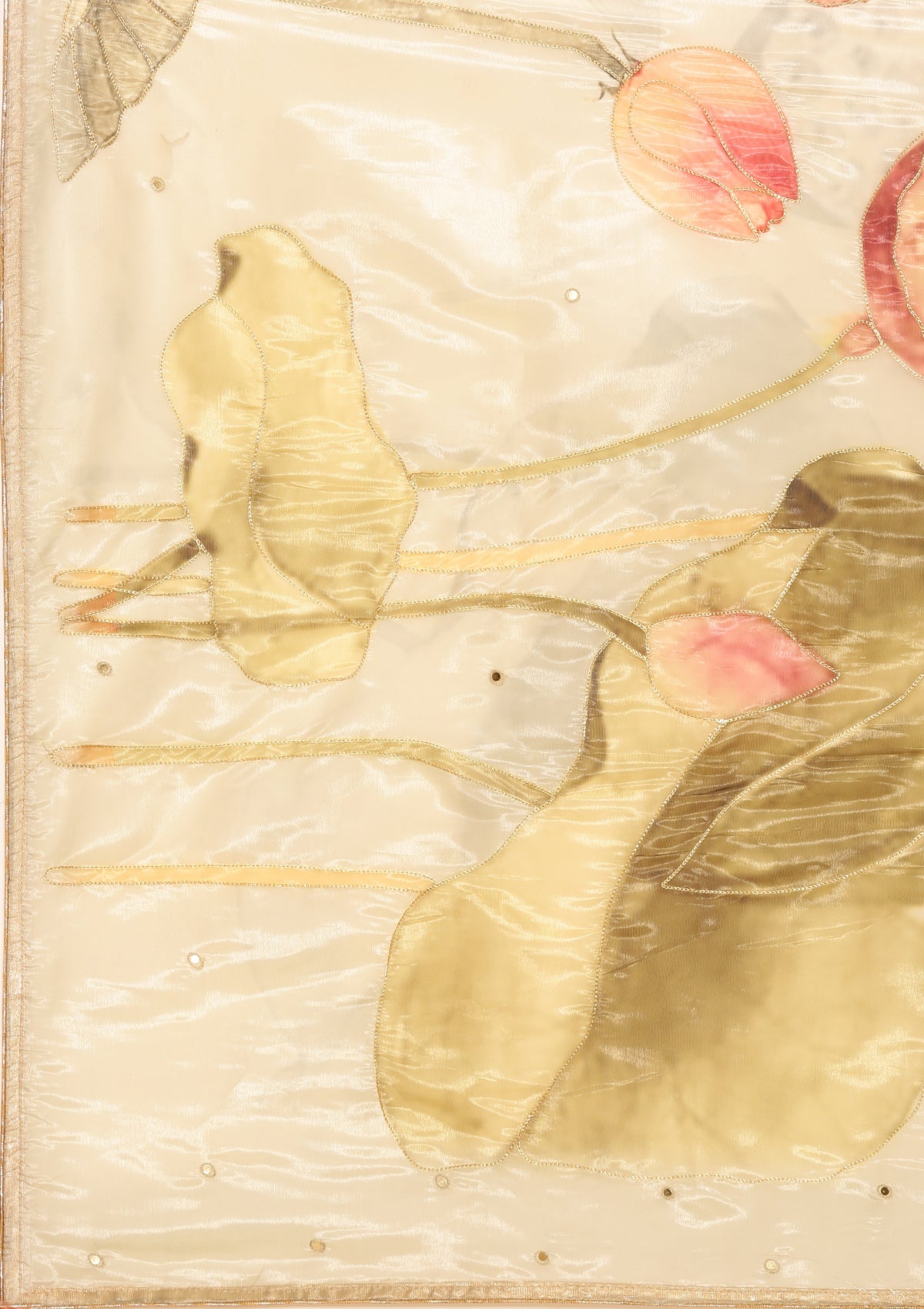 Metallic Sage Green Printed And EmbroideRed Organza Saree