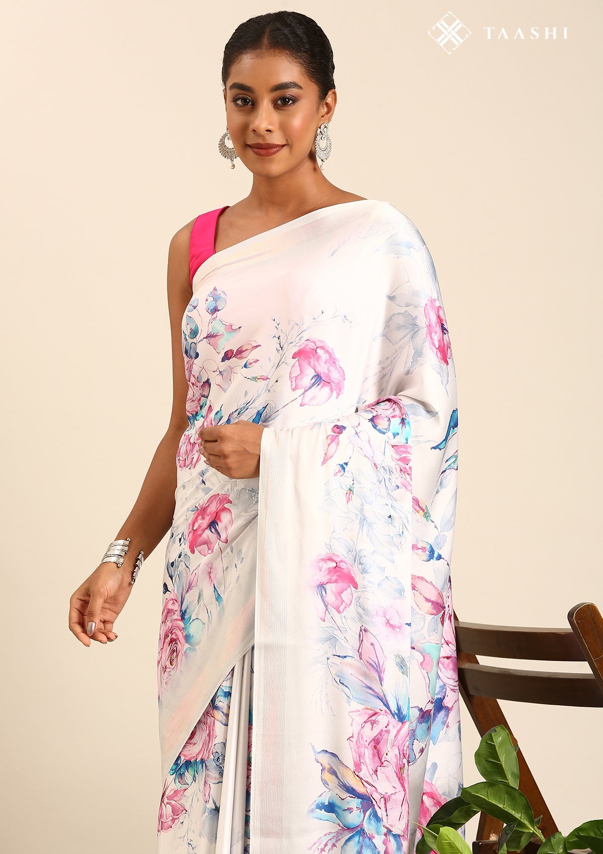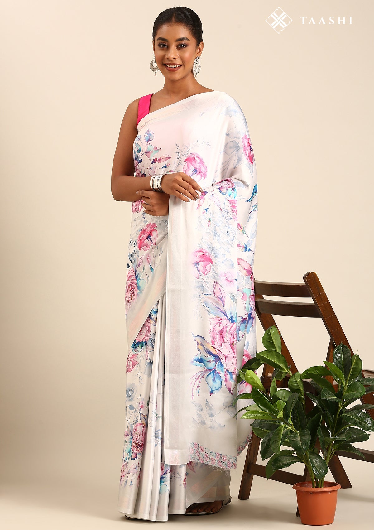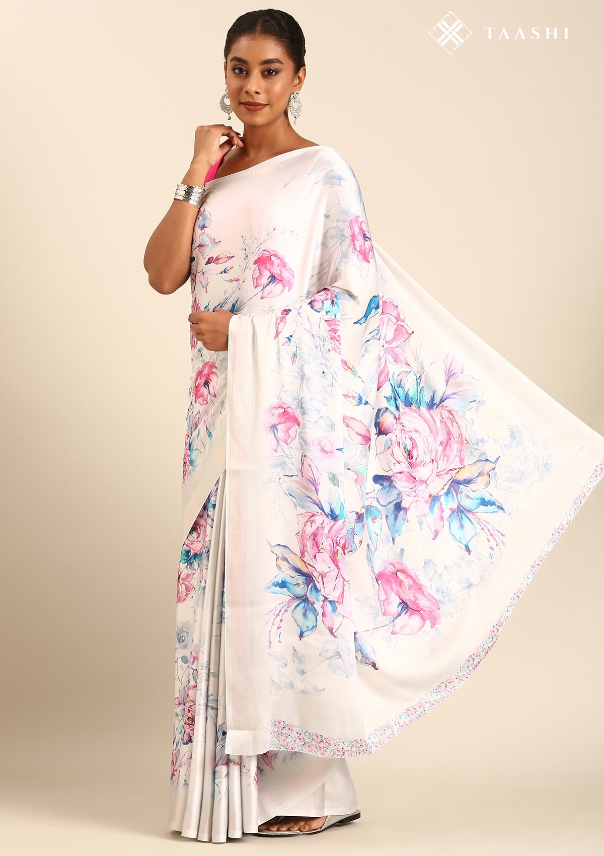 Lavender A/O Floral Printed Satin Saree