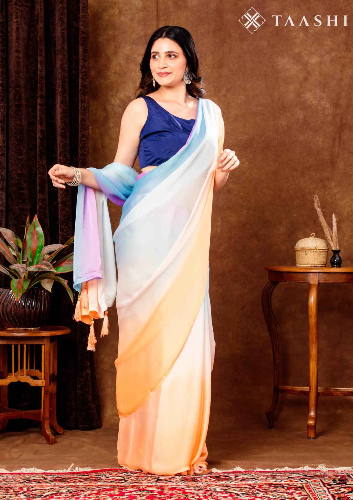 Ombre Blended Colors Crepe Saree