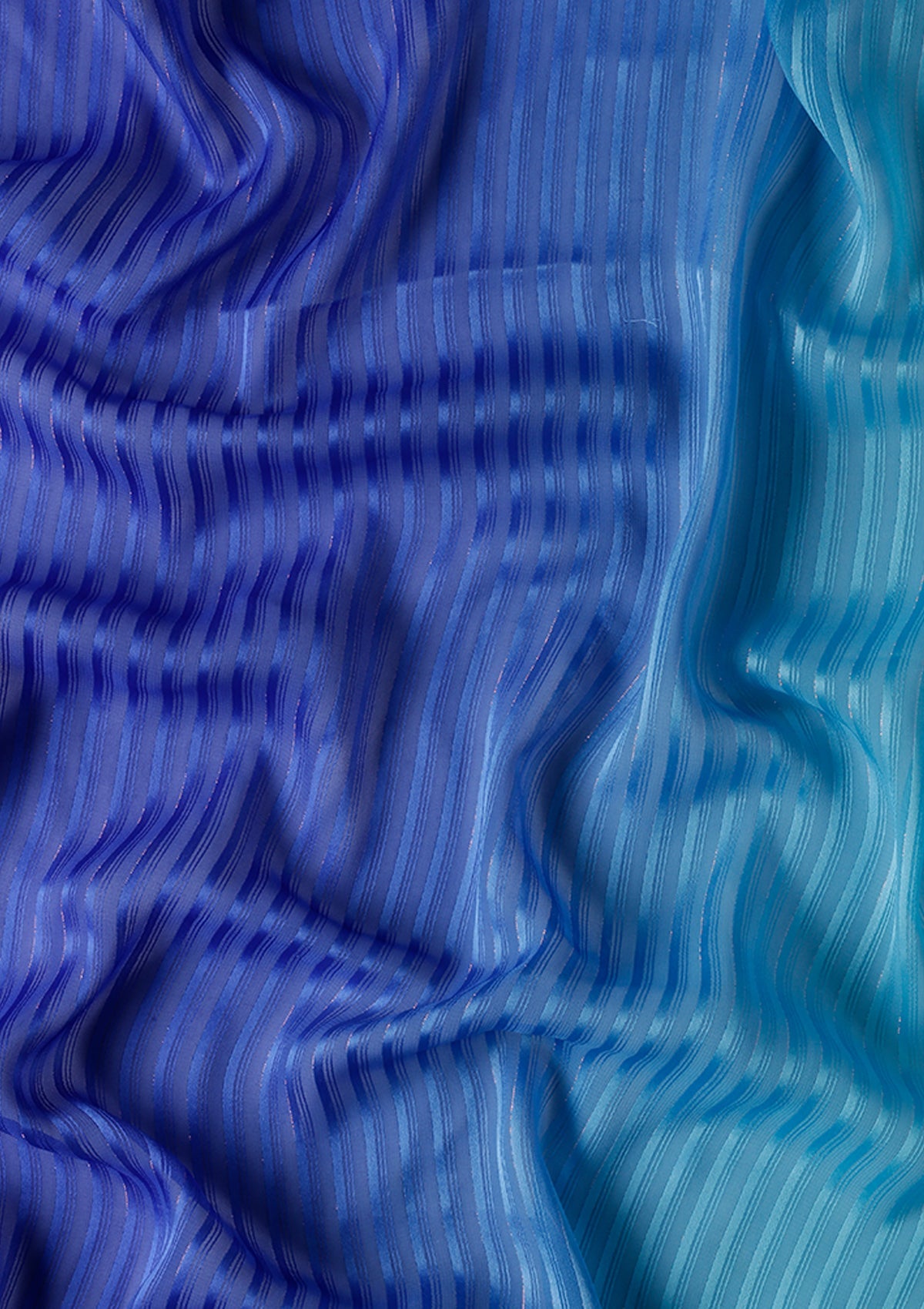 Blue Ombre Metallic Zari Striped Chiffon Saree