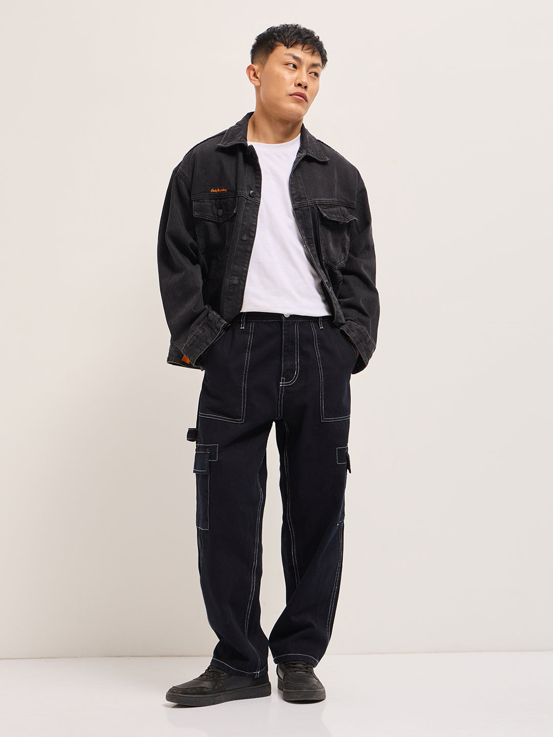 Black Mid-Rise Baggy Fit Cargo Jeans