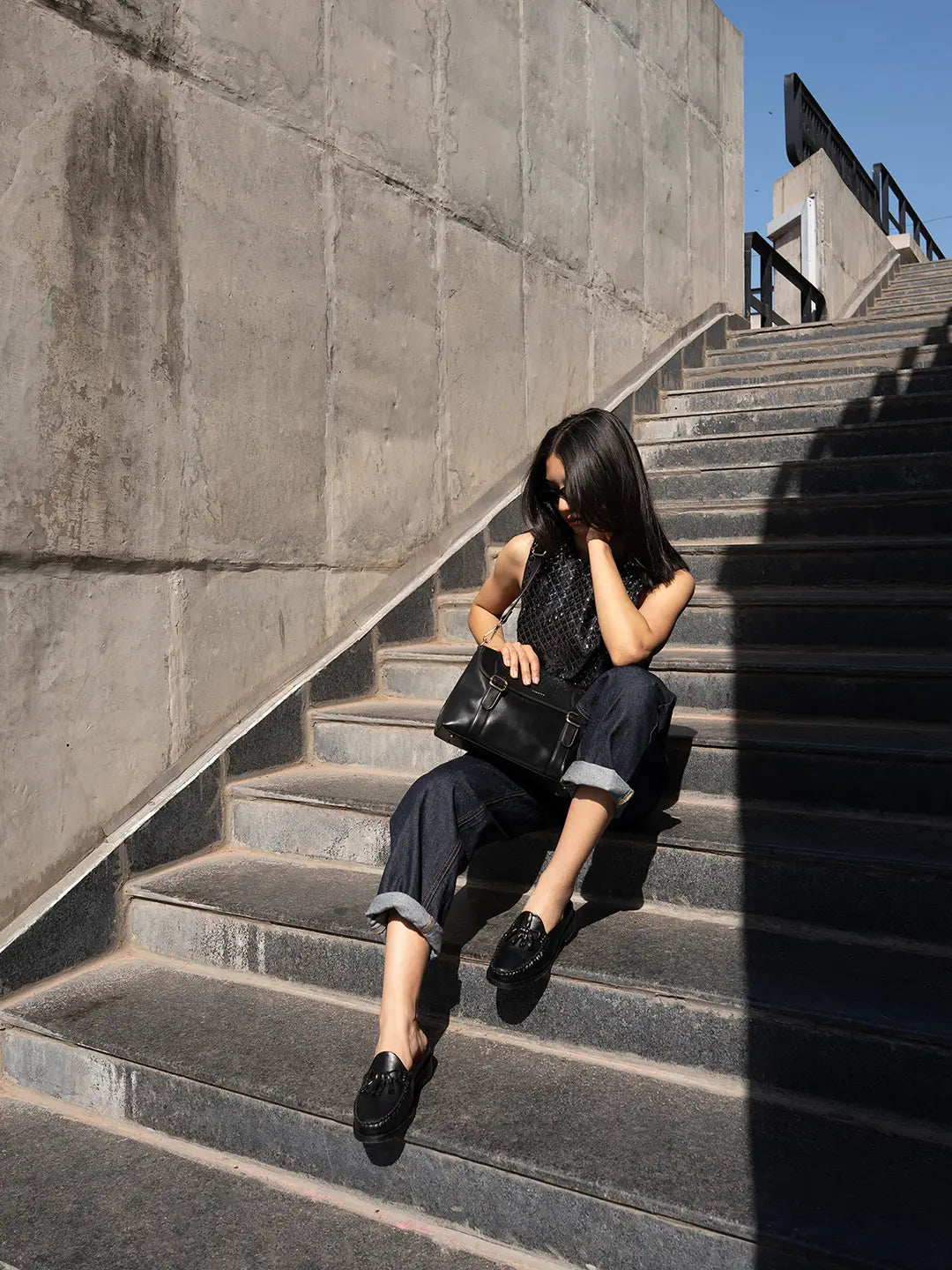 Theater Women Sherlocks Black Leather Tassel Loafers